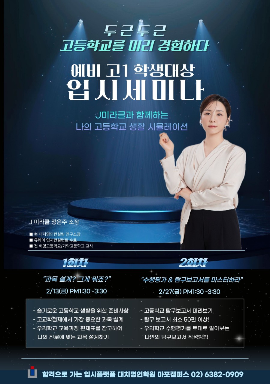 마포명인 학생대상 입시세미나 2/13,27(금) _ 정은주 소장 초빙