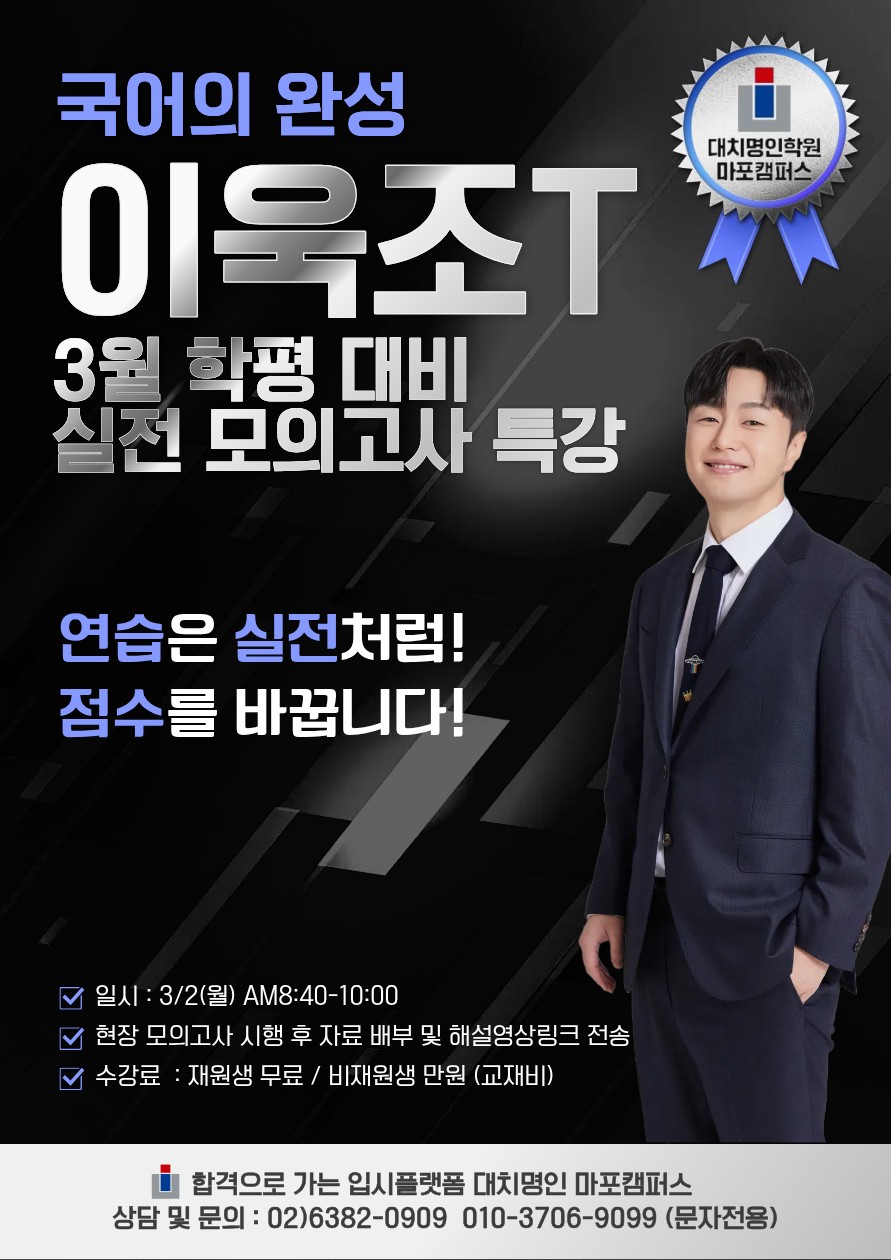 국어의 완성 이욱조T_ 3월 학평대비 실전 모의고사 특강 안내