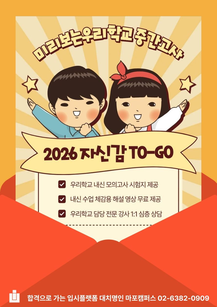 ● 2026.자신감 제작을 위해 저희 마포명인학원의 각 학교 내신을 담당하시는 전문 강사님들이 좋은 뜻을 품으시고 시간과 정성을 들여 애써주셨습니다.