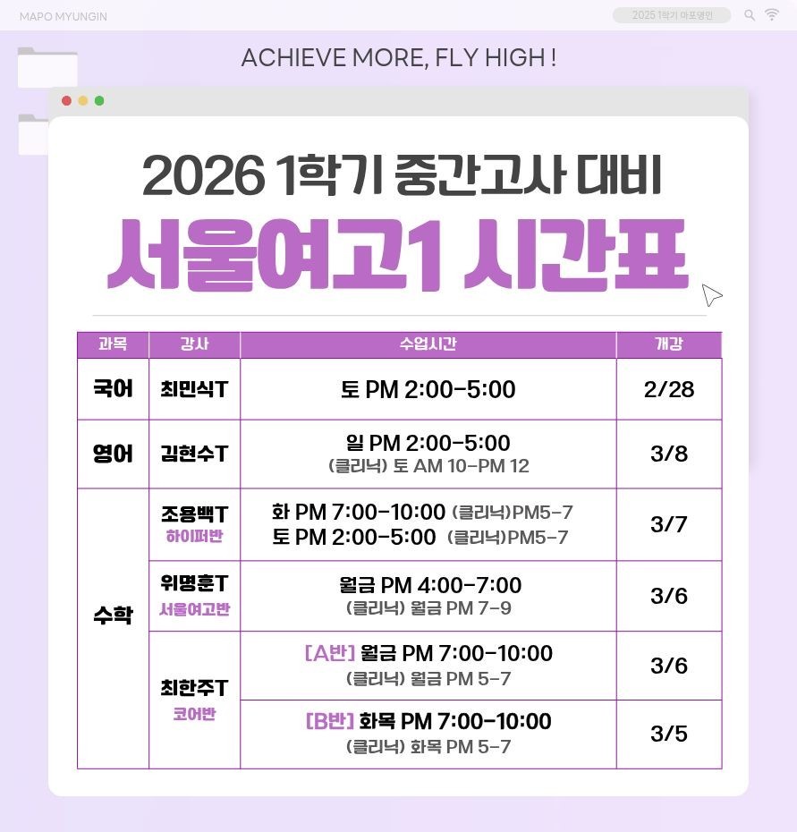 "서울여고" 내신대비 강좌 전타임 개강완료