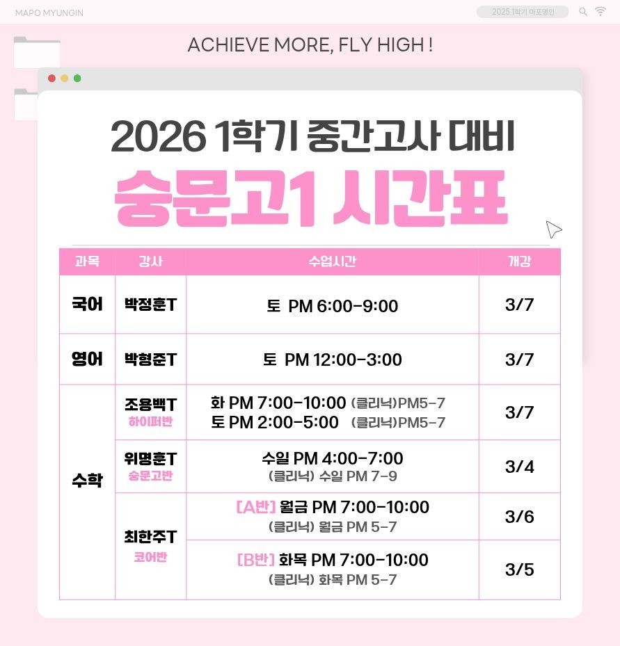 숭문고 내신대비 강좌 전타임 개강완료