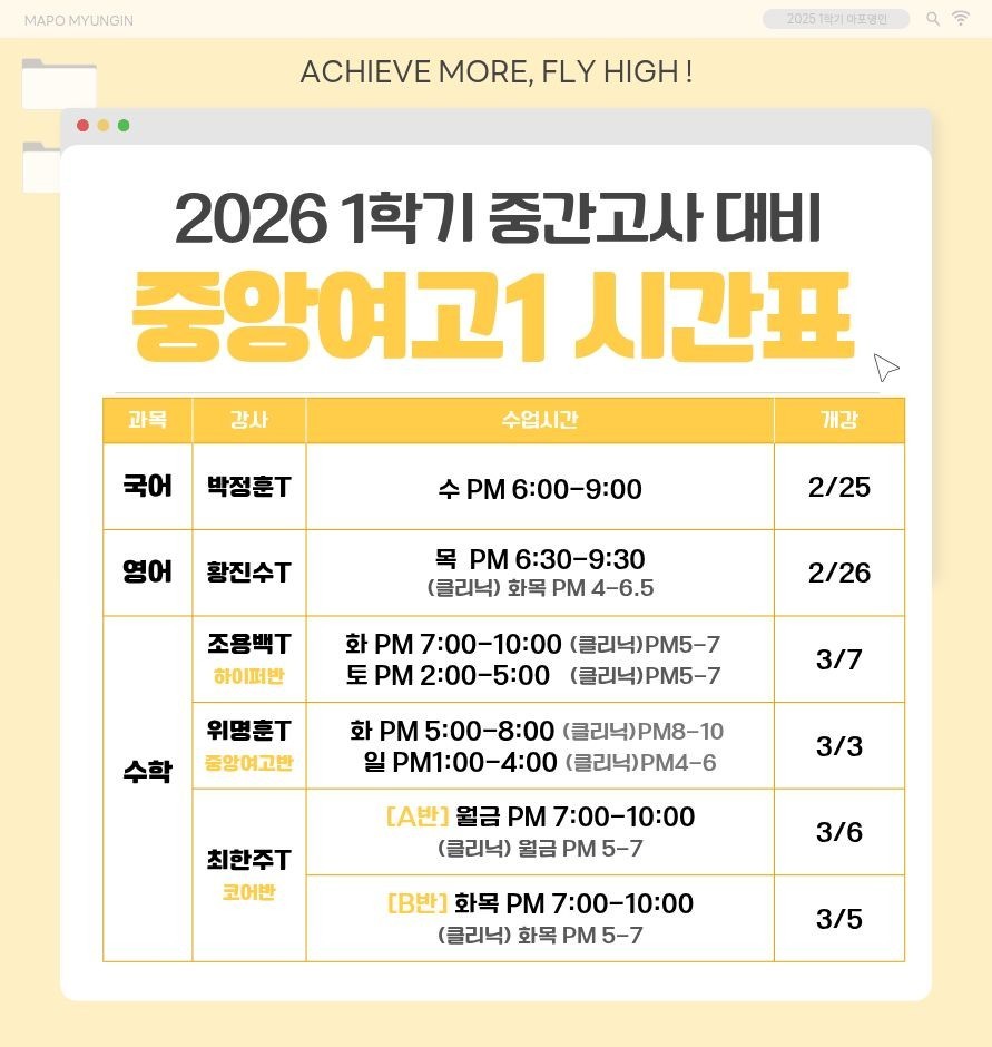 중앙여고 내신대비 강좌 전타임 개강완료