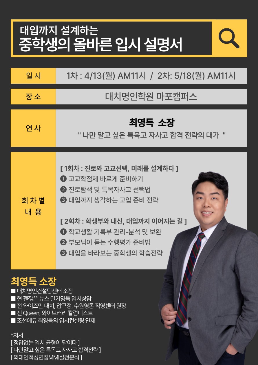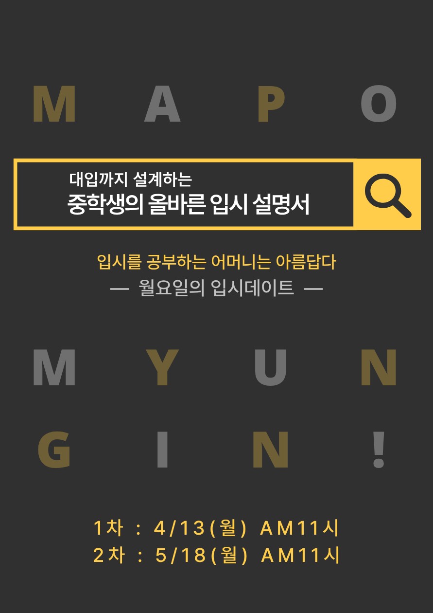 [중등 입시설명회 개최] 1차 : 4/13(월) AM11시 2차 : 5/18(월) AM11시
